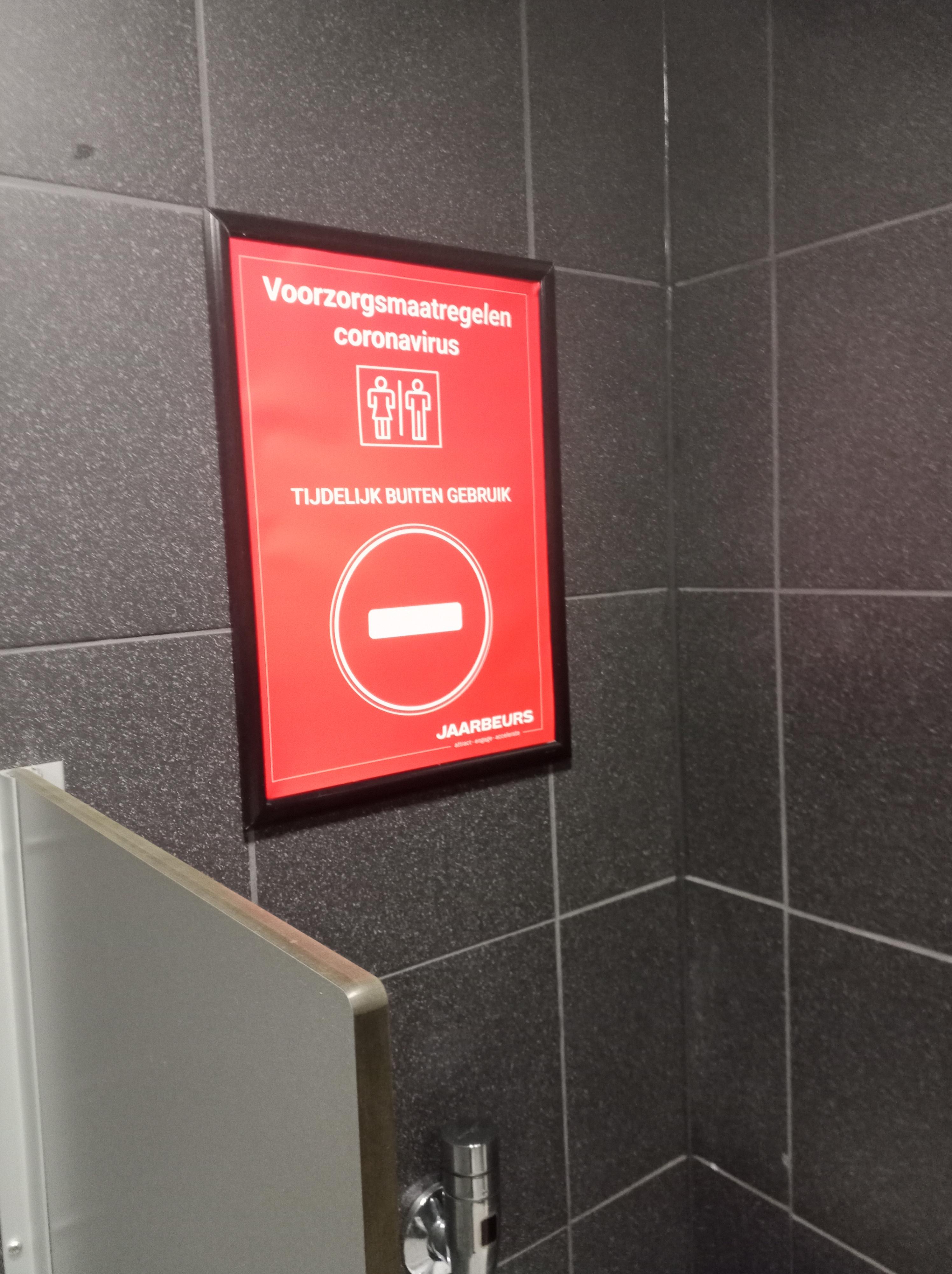 Afstand houden in de toiletten van de jaarbeurs in Utrecht