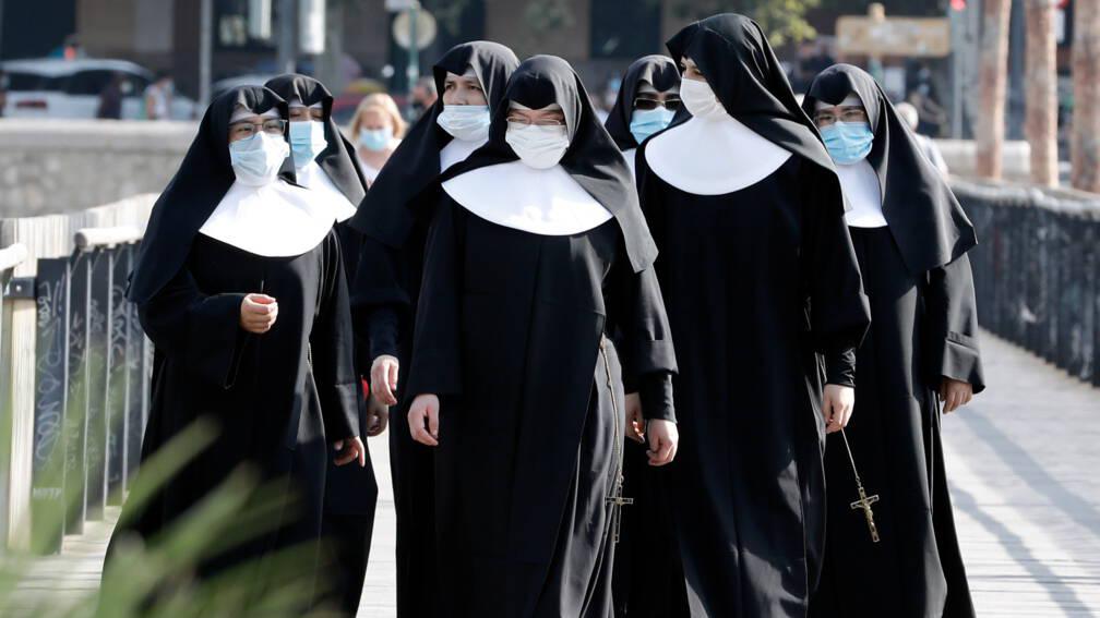 Nonnen dragen mondkapjes