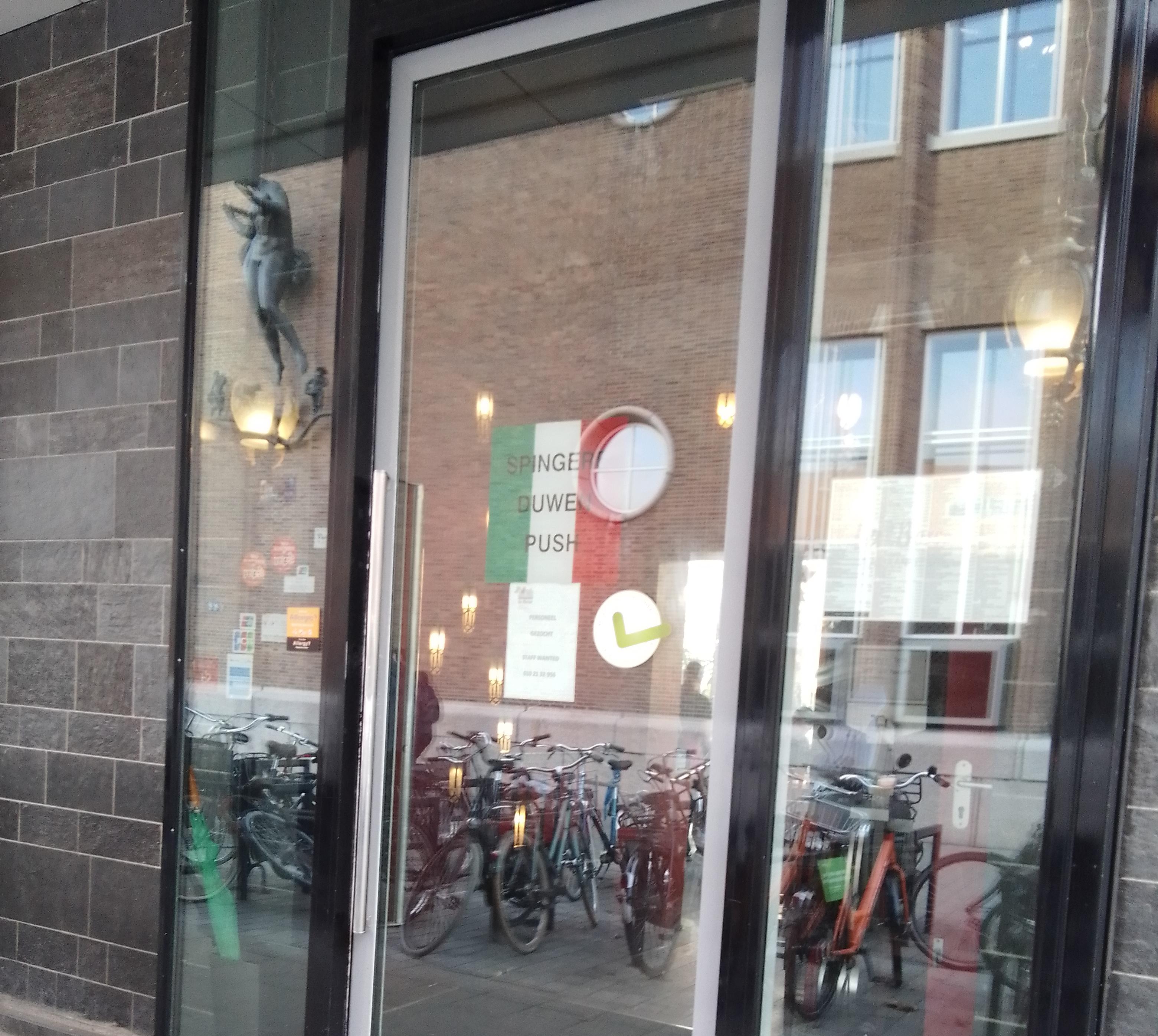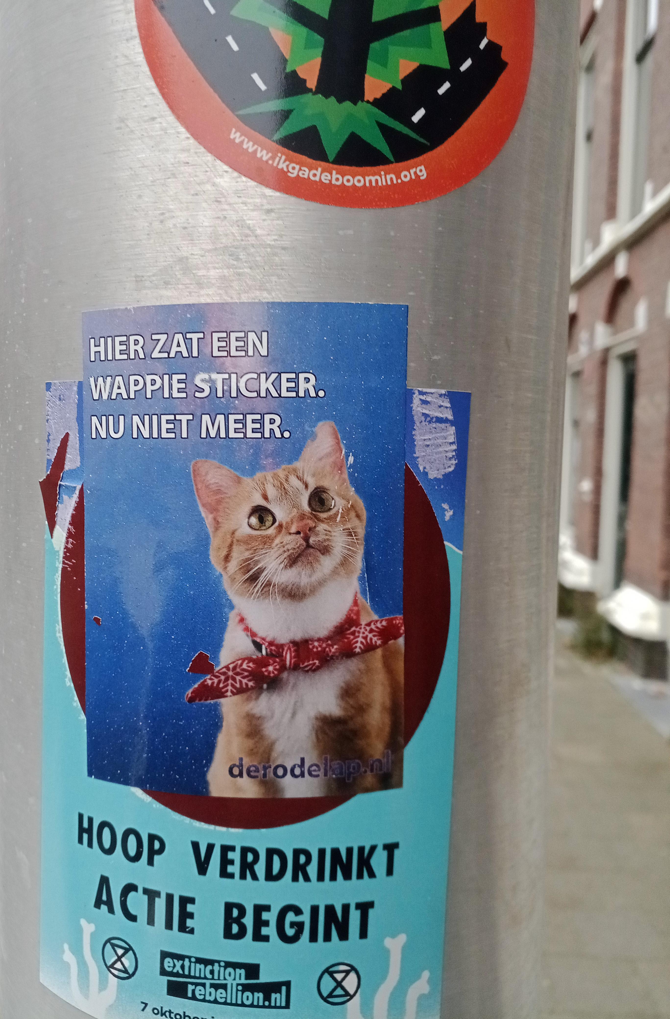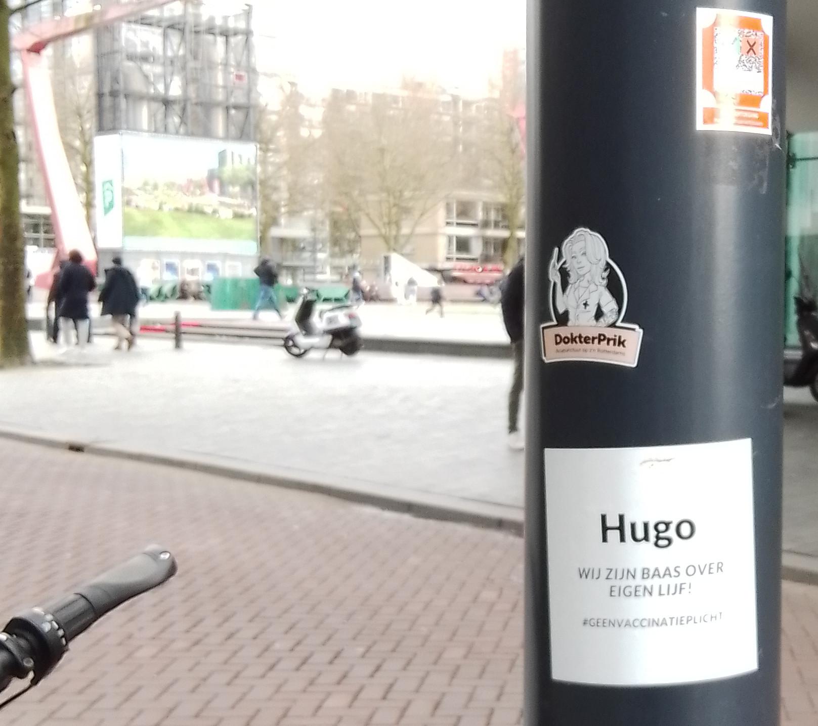 Proteststickers lantaarnpaal Schouwburgplein