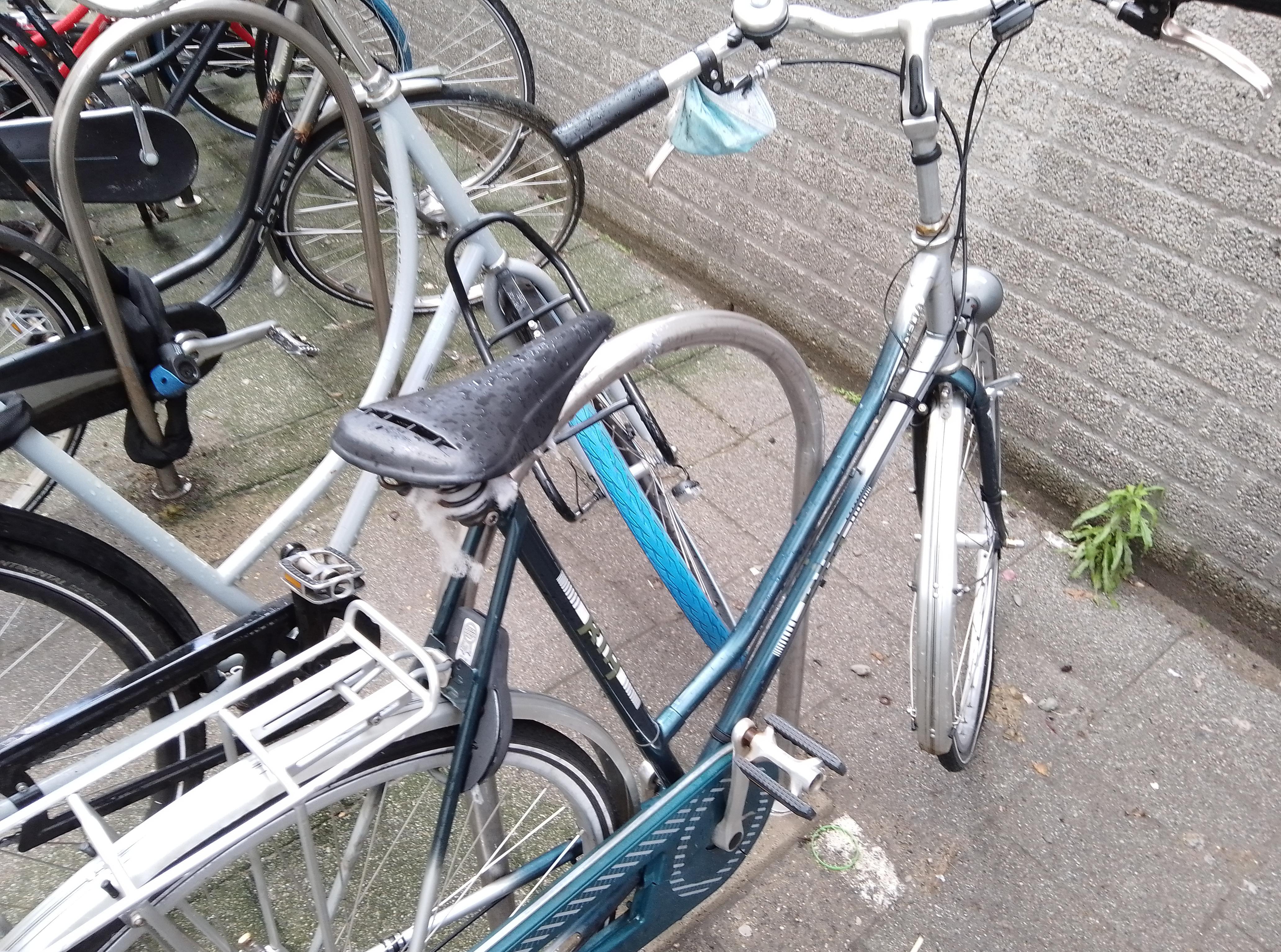 Mondkapje aan het stuur van de fiets